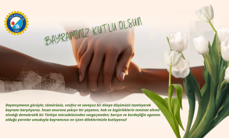 Dayanışmanın gücüyle; sömürüsüz, sınıfsız ve savaşsız bir dünya düşümüzü tazeleyerek bayramı karşılıyoruz. İnsan onuruna yakışır bir yaşamın, hak ve özgürlüklerin teminat altına alındığı demokratik bir Türkiye mücadelesinden vazgeçmeden; barışın ve kardeşliğin egemen olduğu yarınlar umuduyla bayramınızı en içten dileklerimizle kutluyoruz!