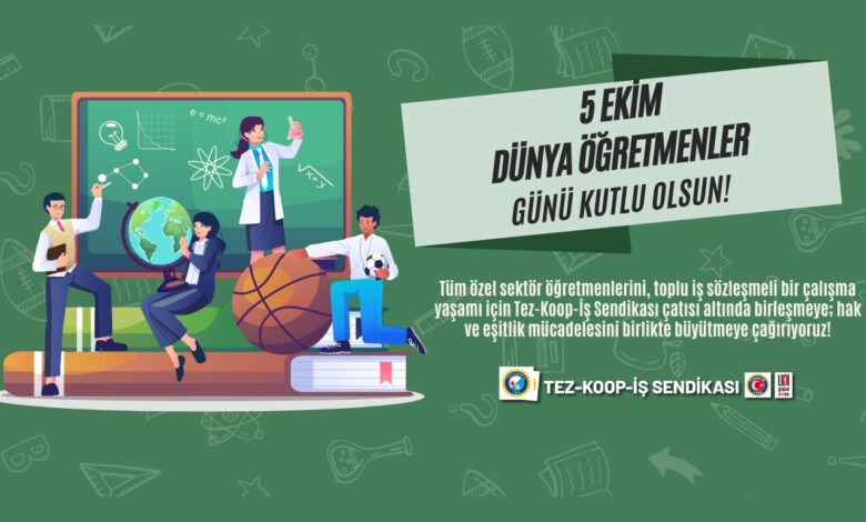 Tüm özel sektör öğretmenlerini, toplu iş sözleşmeli bir çalışma yaşamı için Tez-Koop-İş Sendikası çatısı altında birleşmeye; hak ve eşitlik mücadelesini birlikte büyütmeye çağırıyoruz!