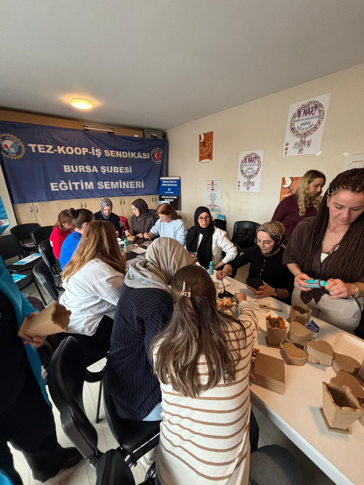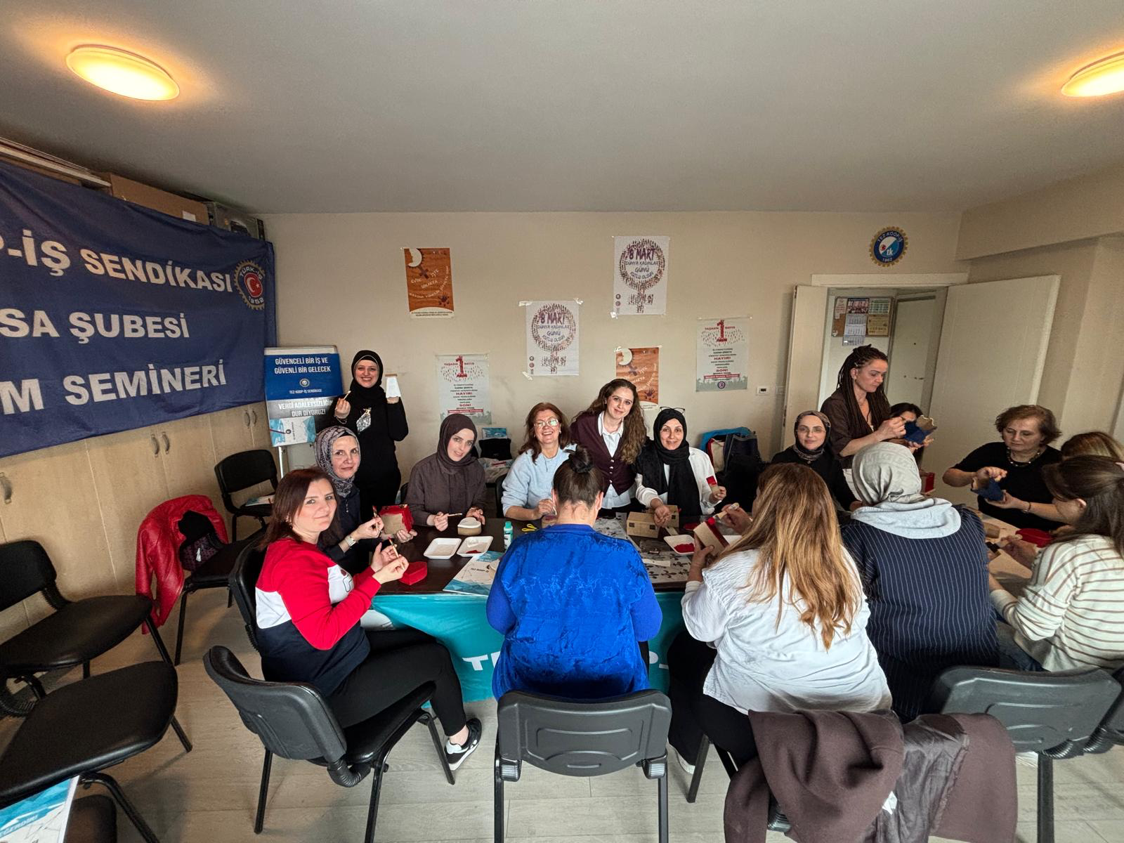 Atölyenin yaşama geçirilmesine katkıda bulunan Bursa şube yönetim kuruluna, kadın temsilcilere, üyelere, emek veren her arkadaşımıza çok teşekkür ederiz.