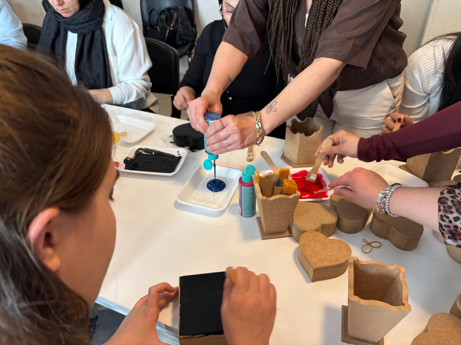 Atölyenin son aşamasını Ahşap Boyama Çalışması oluşturdu. Uzun süreli zihinsel ve duygusal bir etkinliğin ardından oldukça ‘renkli’ bir çalışmaya geçildi. Bir ahşap malzemenin, fırçaların, renklerin seçimi, malzemenin boyanması, ahşap malzemenin kurutulması çabası atölyemizi sanatsal bir çalışma ile taçlandırdı.