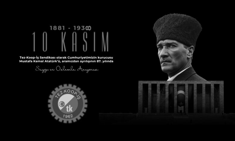 Tez-Koop-İş Sendikası olarak Cumhuriyetimizin kurucusu Mustafa Kemal Atatürk’ü, aramızdan ayrılışının 87. yılında sevgi, saygı ve özlemle anıyoruz.