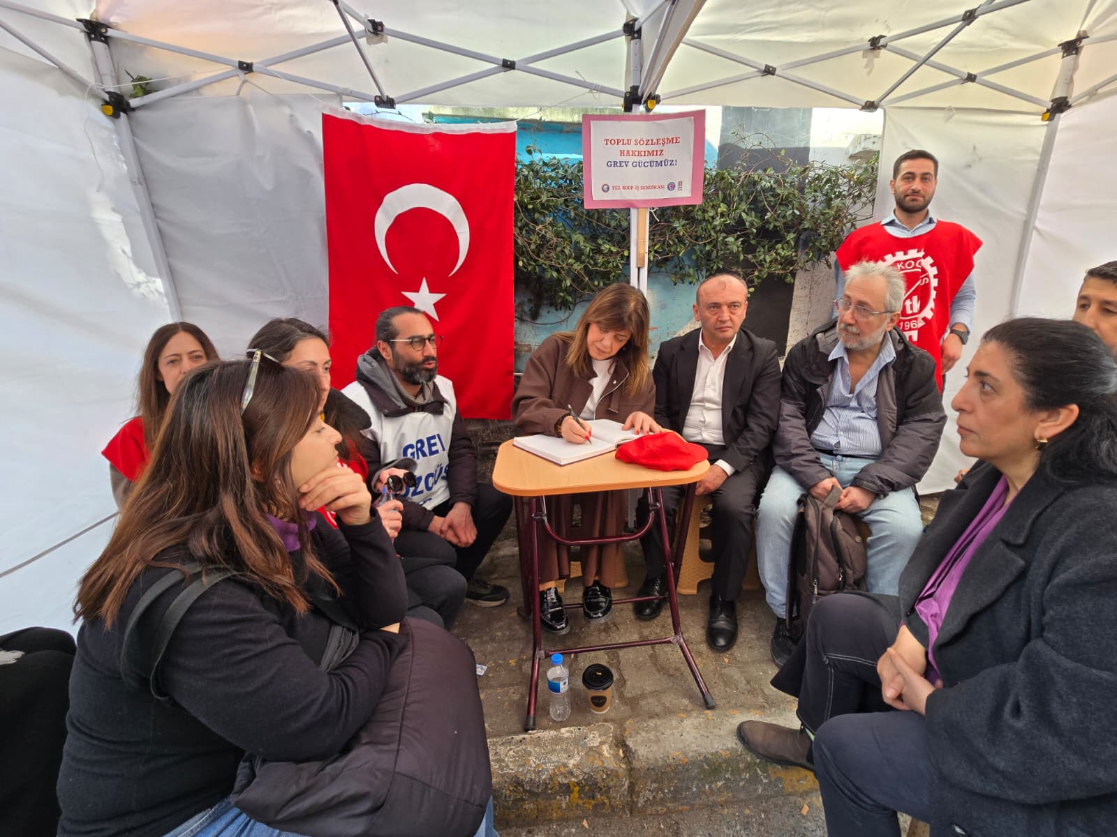 “İşverene sesleniyoruz; grevde olan öğretmenlerin taleplerini bir an önce karşılayın. İnsanca yaşam ve insanca çalışma taleplerini içeren bir anlaşmayla bu grevin sonuçlanmasını sağlayın. Bizler, öğretmen arkadaşlarımız haklarını alana kadar yanlarında durmaya devam edeceğiz.”
