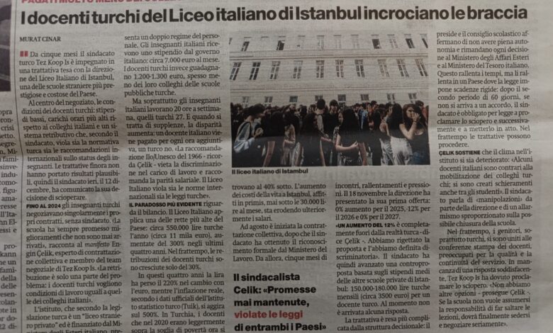 “İstanbul’daki İtalyan Lisesi’nde görev yapan Türk öğretmenler birleşti” başlığı ile yayımlanan haberde, yaşanan süreç aktırıldı ve sendikamız TİS uzmanı Engin Çelik’in görüşlerine yer verildi.